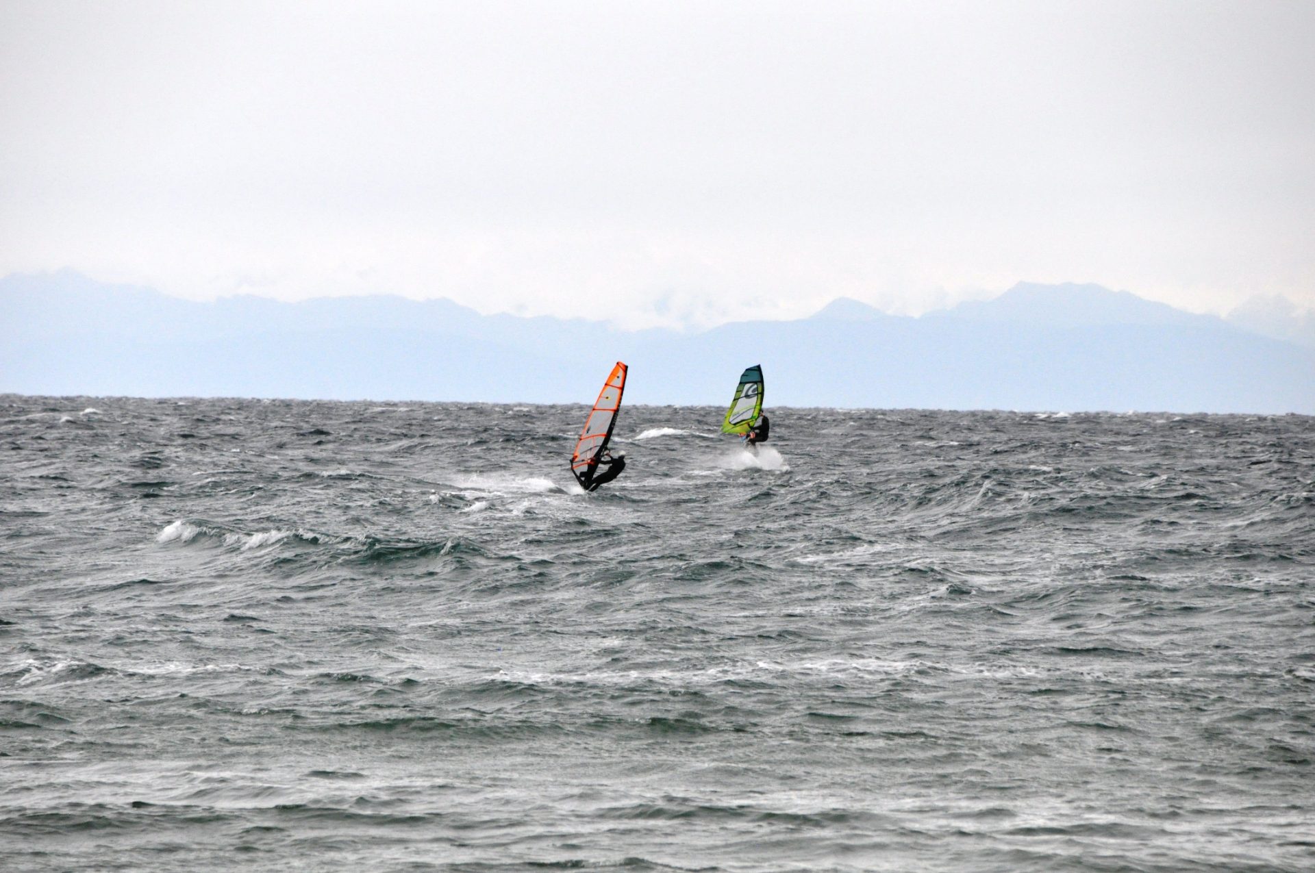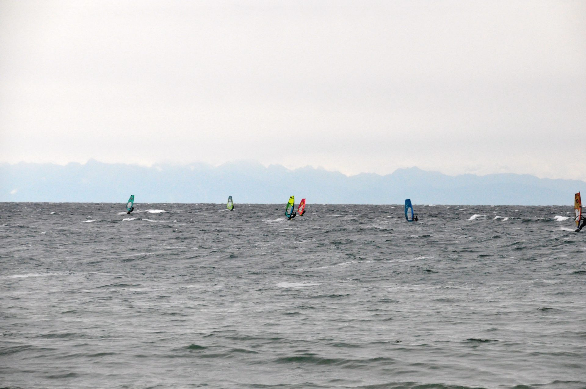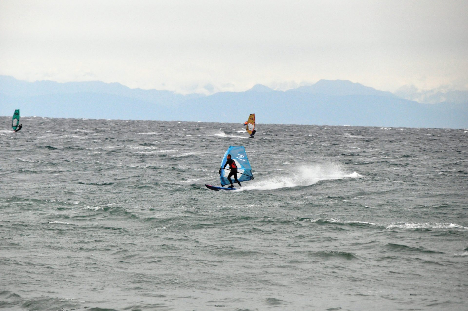 Včasih je tudi napoved slabša kot potem dejansko piha. Danes zjutraj in dopoldan je v Savudriji burja lepo “nažgala”, predvsem po pol 10. uri, ko se je stržen burje premaknil bližje obali. Zbrana druščina srfačev je vozila predvsem male 4ke in 3ke, zjutraj pa tudi kaj večjega. Sicer pa je bilo delovno in hrupno na spotu, saj so gradbinci urejali peščeno parkirišče, zato so bili danes avtomobili parkirani malo drugače.