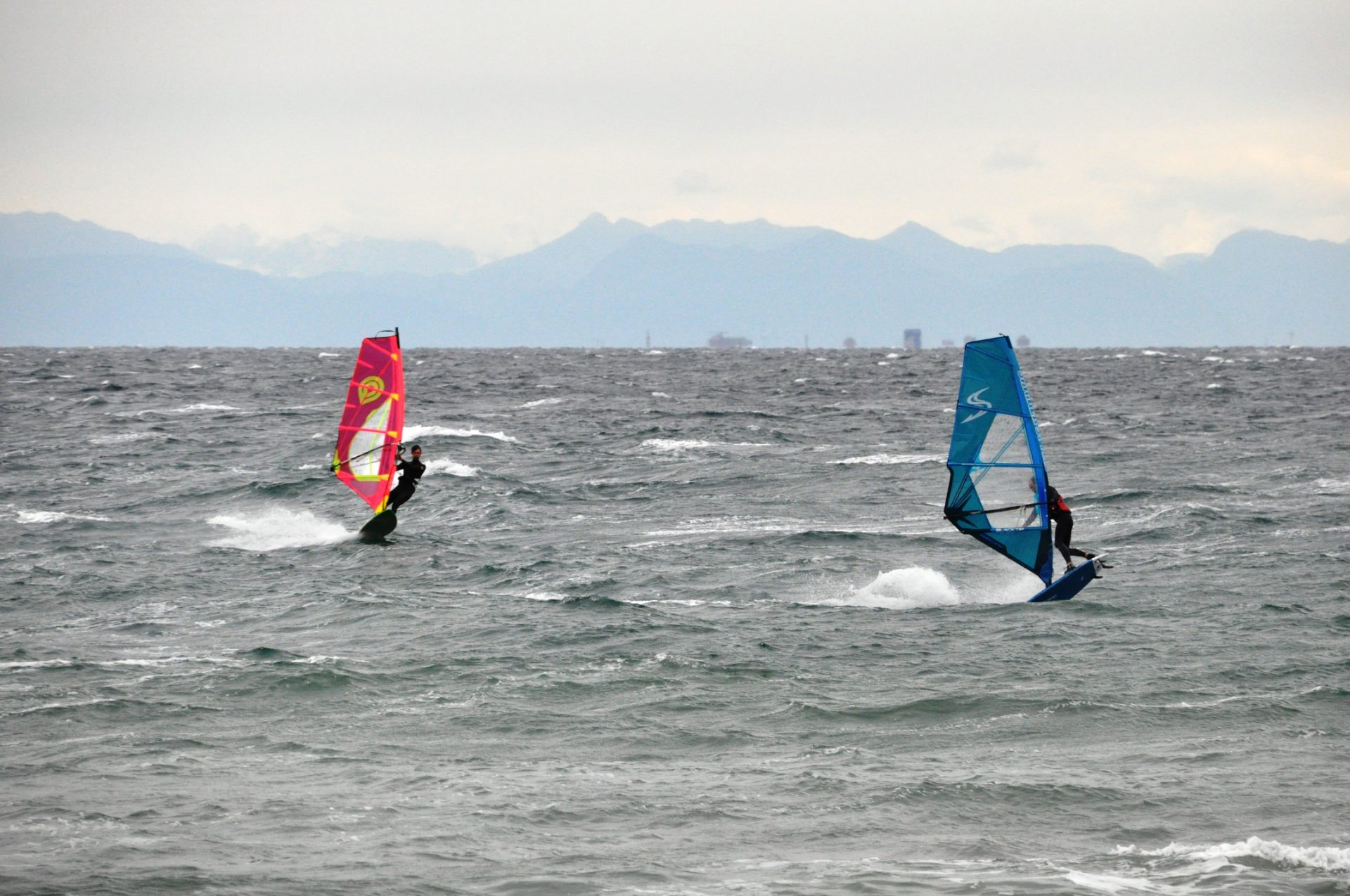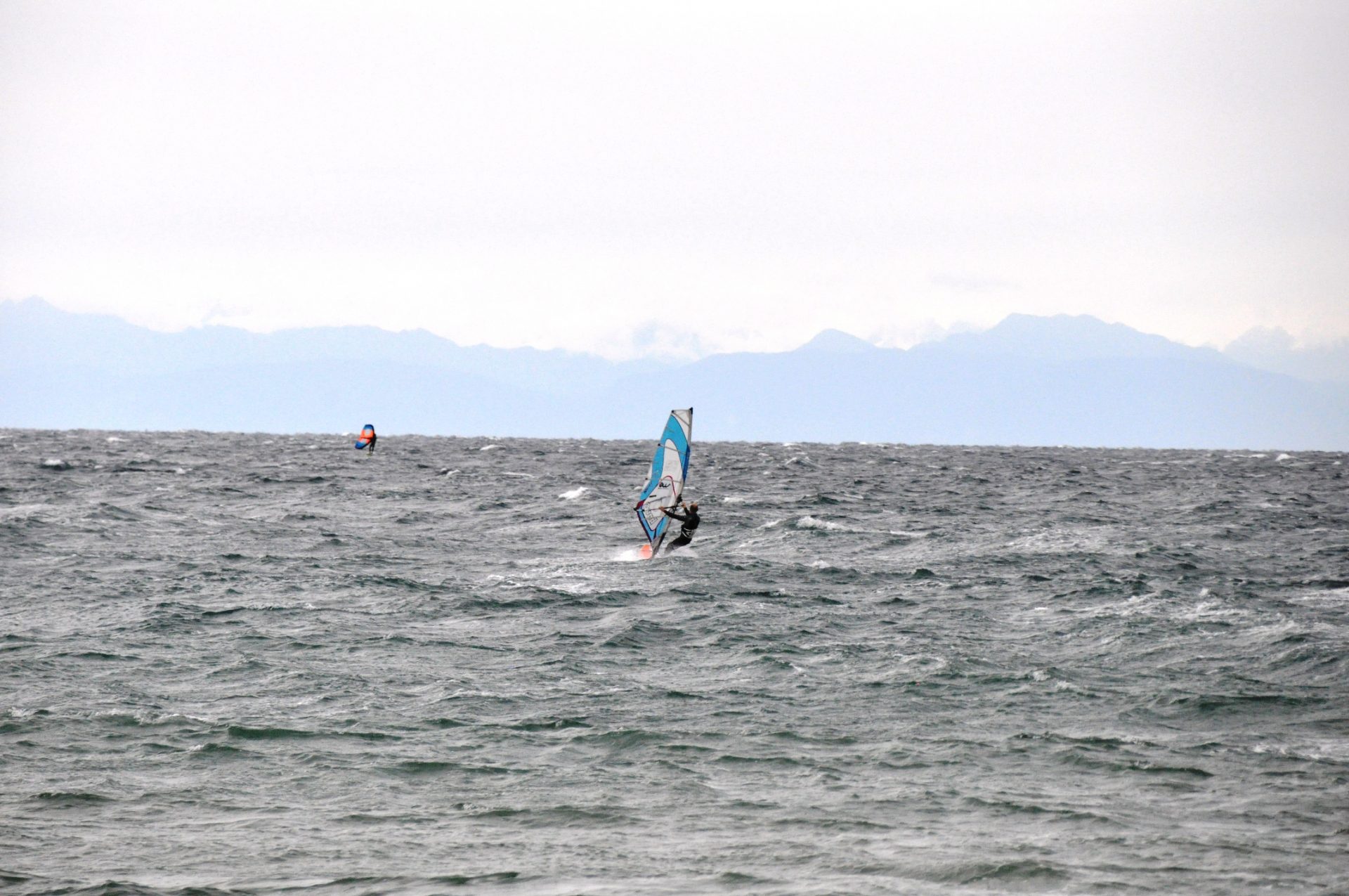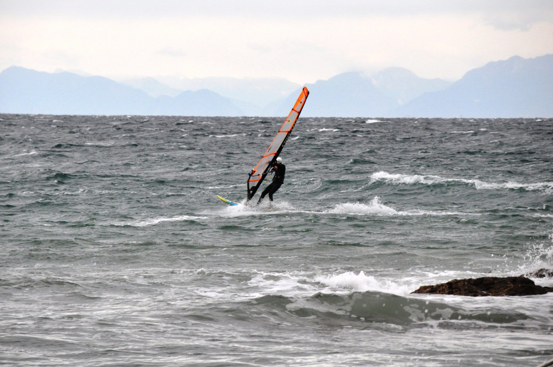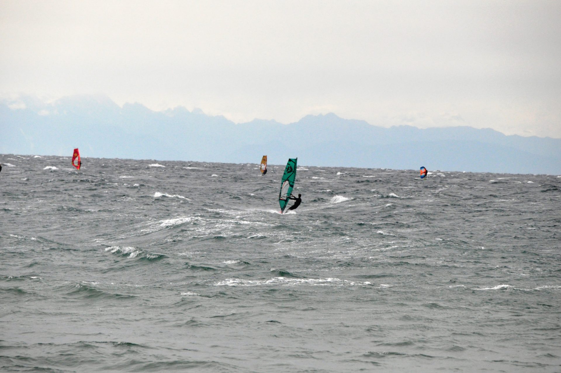 Včasih je tudi napoved slabša kot potem dejansko piha. Danes zjutraj in dopoldan je v Savudriji burja lepo “nažgala”, predvsem po pol 10. uri, ko se je stržen burje premaknil bližje obali. Zbrana druščina srfačev je vozila predvsem male 4ke in 3ke, zjutraj pa tudi kaj večjega. Sicer pa je bilo delovno in hrupno na spotu, saj so gradbinci urejali peščeno parkirišče, zato so bili danes avtomobili parkirani malo drugače.