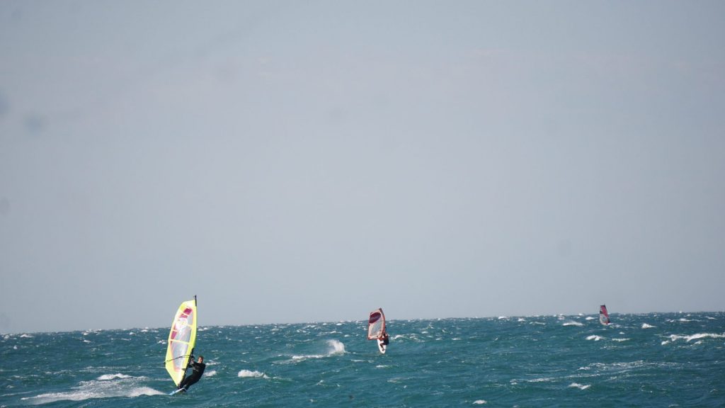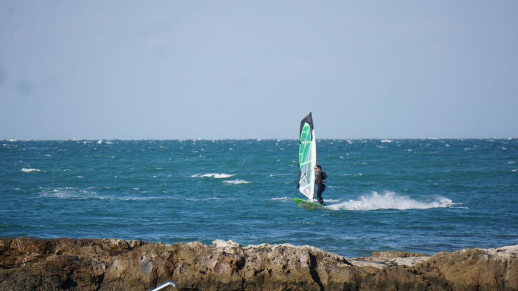 Končno je zapihala prava jesenska burja, ki je na morje zvabila veliko srfačev. Parking v Savudriji je bil kar lepo poln. Močna burja je z manjšimi nihanji pihala cel dan, večinoma so se vozile trojke in male štirke. Vala bolj malo, na trenutke se je za kratek čas prikazal.