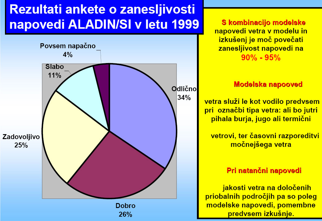 Omenjena anketa je bila pripravljena na samem začetku operativnega delovanja modelov z omejeno ločlivostjo in dinamično adaptacijo DADA. V tistih letih smo na takratnem HMZ pripravili takšna območja računske napovedi vetra nad Slovenijo, ki so zanimiva sa surfarje, jadralce pa še za koga. V tistih letih so se pričele razvijati tudi prve slovenske surfarske spletne strani z intenzivnimi debatami. V anketi so sodelovali kolegi surfači, ki so se udeleževali debatnih pogovorov na spletni strani SloSurf in so posredovali povratne indormacije o vetrovnih razmerah na terenu. Takratni rezultati so bili kot je razvidno spodbudni. V teh osmih-devetih letih se je slovenska surfarska scena precej razširila, vedenja in izkušnje pri napovedovanju vetrovnih razmer so se poglobile, nekoliko pa se je izboljšala tudi resolucija in parameterizacija meteorološkega modela ALADIN/SI in posledično tudi dinamična adaptacioja tega modela DADA. V tem času je bila za območje Jadrana s strani hrvaškega DHMZ pripravljena dinamična adaptacija modela ALADIN/HR.
